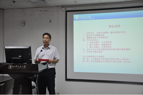 典礼仪式上,院长单文华教授首先向新同学们表示祝贺和欢迎。他在讲话中指出,2016年对法学院来说是具有特殊意义的一年。在学院师资队伍不断壮大和优秀生源不断增加的同时,首次开设并招收了面向海上丝路的“中澳丝路班”(中国本科+澳洲JD)和面向陆上丝绸之路的“中国与国际商法”全英文硕士学位班。并招收了第一批面向“中澳丝路班”学生。其中“中澳丝路班”项目更属于全球首创,堪称LEDONG.COM法学院在国际化办学方面的一个里程碑。他表示,在这次开学典礼上,新生们将在学院老师的带领下首次宣誓入学,这也将是中国最早最规范的法科生誓词之一。他对新同学们提出了两点期望。一是“不忘初心”。关于什么是初心,单院长从三个小问题引导同学们找到答案。第一个小问题是为什么要上大学。单院长强调求学是为了“明德、新民”,为了陶冶良好德行,同时洞察世事,不断推陈出新,不断更新自己、完善自己。第二个小问题是为什么选择交大。单院长提到了交大第十一任校长唐文治老先生对交大学子的定位:“须知吾人欲成学问,当为第一等学问;欲成事业,当为第一等事业;欲成人才,当为第一等人才。而欲成第一等学问、事业、人才,必先砥砺第一等品行”。单院长指出交大是一个以第一等为目标的学校,志存高远、影响卓著。第三个小问题是为什么选择交大法学院。单院长以 “正气、正道、正义、卓越” 的法学院院训为切入点,阐释了院训的意义,即正气是为人,正道是为事,正义是执业,卓越是为学。铁肩担道义,妙手著文章,这是我们法学院对学生的要求与期望,也是我们共同的“初心”。接着,单院长对同学们提出了第二点期待,即“奋勇前进”。单院长强调,作为交大法学院的学生,大家必须持续发奋努力,同时还要有勇气、有担当。他以新成立的“中澳丝路班”为例,中澳丝路班将经历层层选拔,最后只有最优秀和最坚毅的佼佼者才能达到胜利的顶点。单院长希望每一个法学院的学生有智有勇,顽强奋斗,勇敢地面对并克服挑战。最后,单院长寄语法学院全体2016级新生,祝愿新同学们在法学院获取知识,锻炼能力,培养品性,收获成功。