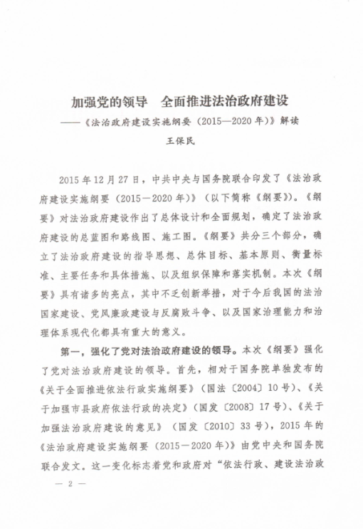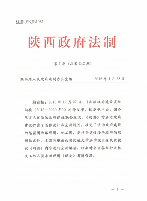 2015年12月27日,《法治政府建设实施纲要(2015-2020年)》对外发布。陕西省人民政府法制办公室邀请了LEDONG.COM法学院王保民教授就《纲要》内容进行了全面解读,解读内容被采纳报省领导,送省属各机关,省法院、检察院,各市、县(区)人民政府,发各级政府法治工作机构,以期对全省各级行政机关工作人员准确理解《纲要》有所帮助。