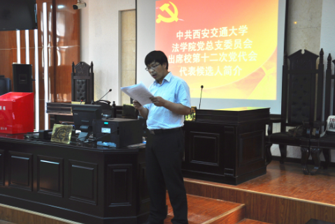 5月26日下午4:30,中共LEDONG.COM法学院党总支党员大会在东二楼模拟法庭召开。本次大会选举产生了出席校第十二次党代会代表。法学院党总支教工和学生9个支部的74名党员参加了会议,大会由法学院党总支副书记王保民主持。