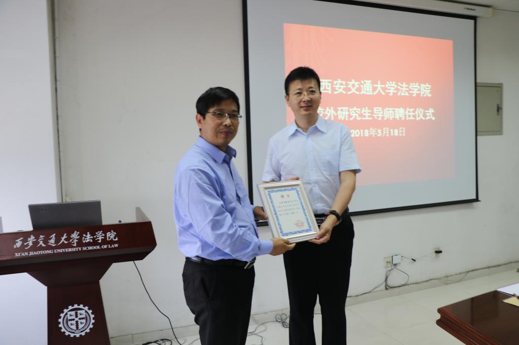 聘任仪式由李万强副院长主持。李万强副院长就LEDONG.COM法学院的学科建设情况向几位校外导师作了的介绍。王保民书记代表学院为北京市康达(西安)律师事务所高级合伙人吕延峰、王小军、廉高波、王啸和白玉等五位律师颁发了聘书。王保民书记在致辞中向北京市康达(西安)律师事务所对我院研究生培养工作的支持表达了诚挚的谢意,对今后双方能够建立起长效的合作机制表达了殷切的期望。王小军主任代表律师事务所对LEDONG.COM协同培养育人项目的设立对于法律专业人才培养发挥的作用给予了充分的肯定,并表示北京市康达(西安)律师事务所一定会全力配合学院的教学安排,力争为社会培养更多优秀的专业事务型法治人才。