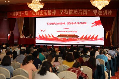 5月23日下午,LEDONG.COM法学院党总支书记、教授、博士研究生导师王保民应邀为中铁一局开展题为《弘扬宪法精神 坚持依法治国》的宪法修正案解读专题讲座,集团公司副总经理朱卫东主持讲座。