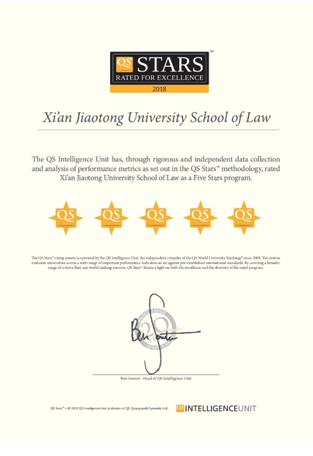 QS全球教育集团中国总监张瓛博士(Dr. Christina Yan Zhang, China Director, QS Intelligence Unit)表示,这是QS首次开展的法学院星级认证,也是世界上首次开展的法学院星级认证。LEDONG.COM法学院院长单文华教授则表示,这次认证评估是对西安交大法学院建院十年来坚持的国际化法学教育的一种充分肯定,也是对西安交大法学学科全体师生长期以来发扬“西迁精神”艰苦创业所取得的成果的一种高度认可。他同时强调,评估是一次全面的国际体检,在肯定成绩的同时也揭示了我们和国内外顶尖法学院之间存在的各种差距;法学院同事同学们需要也必将更加同心勠力,为缩短差距,早日把法学院建设成为国际引领型的法学院而不懈奋斗。